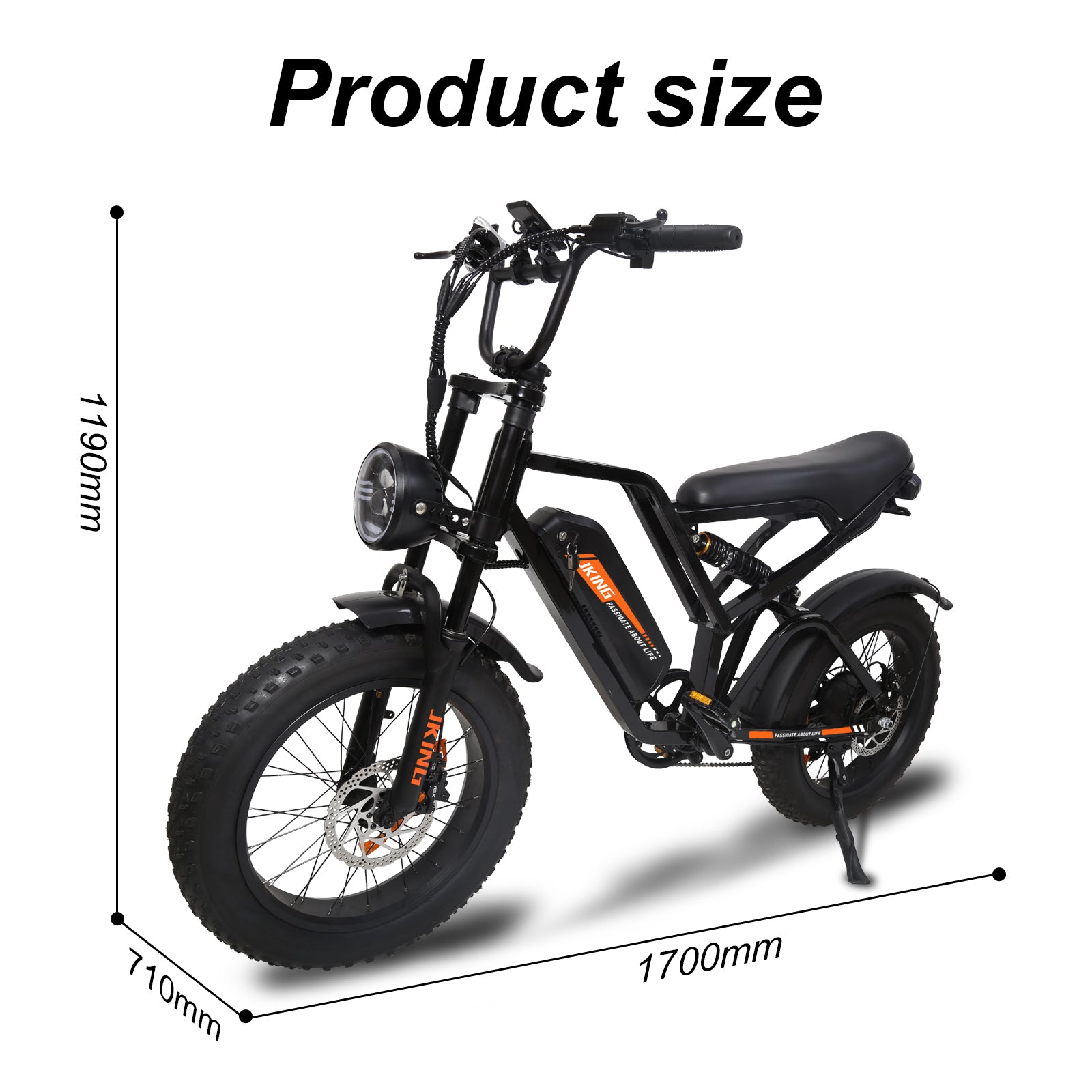 | Motor Power | 48V 1000W peak brushless hub motor |